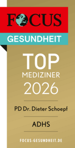 FOCUS-ÄRZTELISTE im Januar (2026). Priv. Doz. Dr. med. Dieter Schoepf ist mehrfach (3-mal) auf der FOCUS "Ärzteliste 2026". Er erhält das Siegel für die Bereiche „Depressionen“ und „ADHS“. Auf beiden Gebieten liegen Schwerpunkte der Praxis. https://focus-epaper.de/leseprobe/24053/2024/. Zusätzlich pflegt Priv. Doz. Dr. med. Dieter Schoepf einen fachlichen Schwerpunkt im Bereich der „Schizophrenien“, wofür er jetzt auch ausgezeichnet worden ist. Die Empfehlungslisten sind ab dem 26.01.2026 auf focus-gesundheit.de einsehbar.
